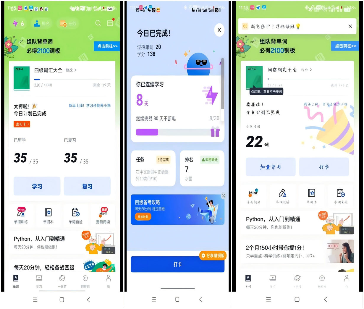 面向yl7703永利2024级本科生开展的2025·英语词汇挑战赛如火如荼地进行中。自2025年4月1日开始线上APP学习打卡以来,目前行程已过半,让我们一起走进他们,感受学习的热情!