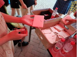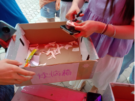 一段时间后,参加者返回大本营,在解忧箱子中找到自己的贺卡看完已给与解决方法后,将贺卡剪碎放入爱心盒子里。剪掉自己的烦恼。