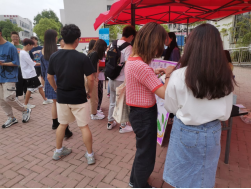 紧接着,第一个小高峰来了。一眨眼的功夫,大本营前面就排起了长队。有的同学是来观看海报,有的同学积极咨询活动内容……所有的问题,我们的工作人员们都一一解答。
