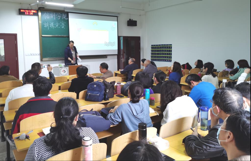 为组织好本次讲课比赛工作,学院成立了由学院领导、各系部主任和资深教授组成的评审委员会。通过初赛选拔,参加本次现场教学演示的参赛青年教师共5名,全院专任教师参加了观摩。
