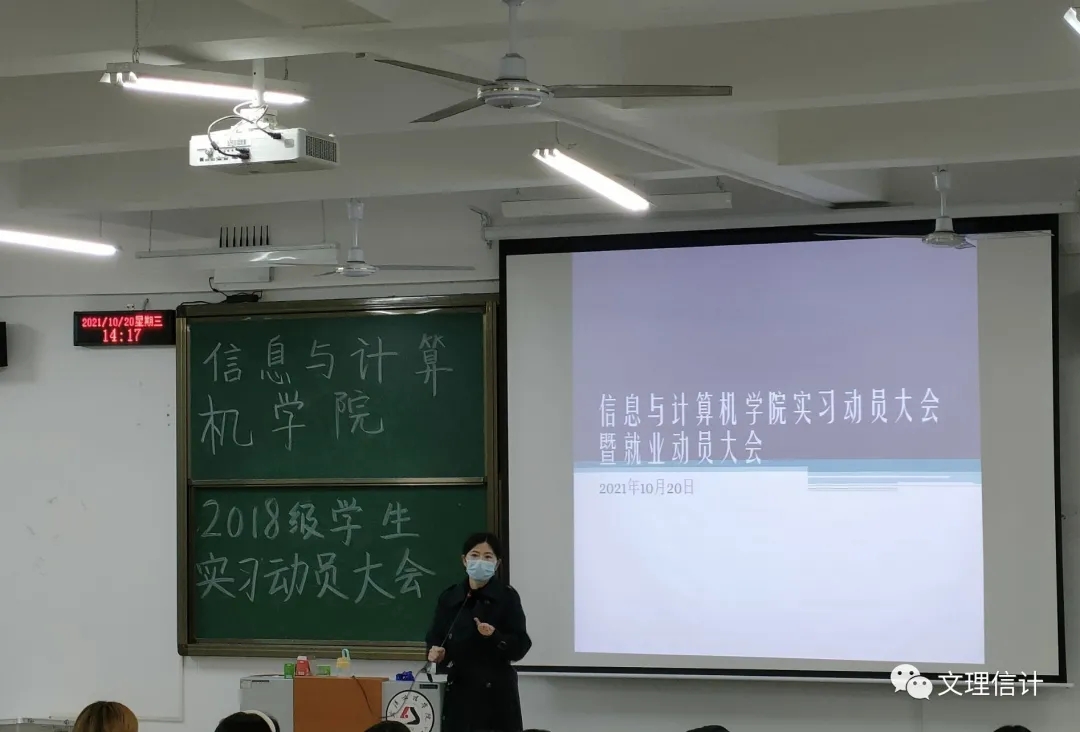 10月21日下午,yl7703永利召开2022届毕业生实习就业动员大会。学院党总支书记武凌、副院长缪琦出席,电信系和计算机系全体教师、2018级全体学生、辅导员、班主任参加会议。会议由副院长缪琦主持。