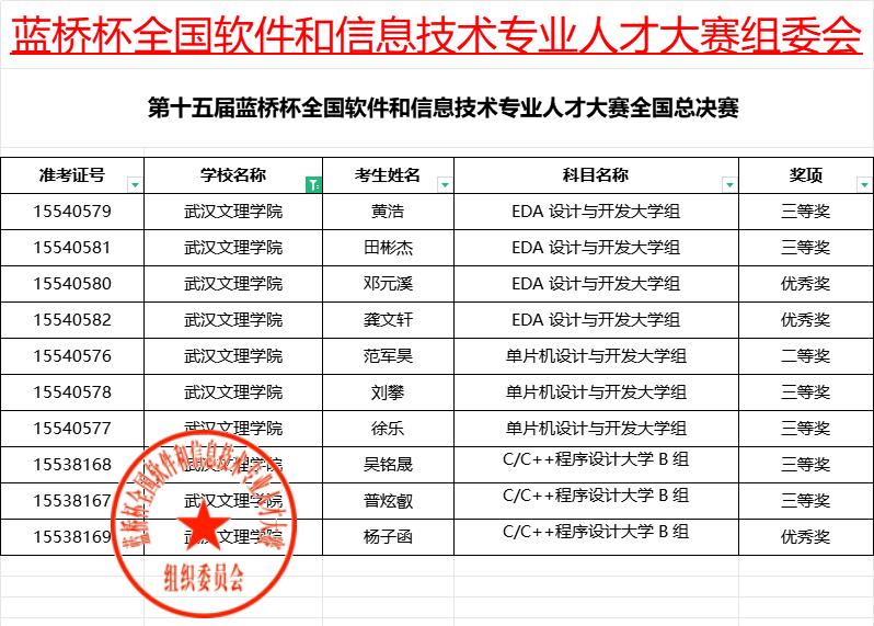 6月1日,一场信息技术领域的知识盛宴——第十五届蓝桥杯全国总决赛个人赛在武汉软件工程职业学院和武汉东湖学院举行,吸引了全国上千所高校的关注。我校yl7703永利10名学子参赛,在C/C++程序设计、EDA设计与开发、嵌入式设计与开发三项赛事中,他们发挥出色,以扎实的专业知识、精湛的技能、创新的设计和卓越的实践能力,表现出色,斩获全国二等奖1项、三等奖7项、优秀3项。再次展现了学院在IT技术领域的教育与培训实力,在教育教学和人才培养方面的显著成效。
