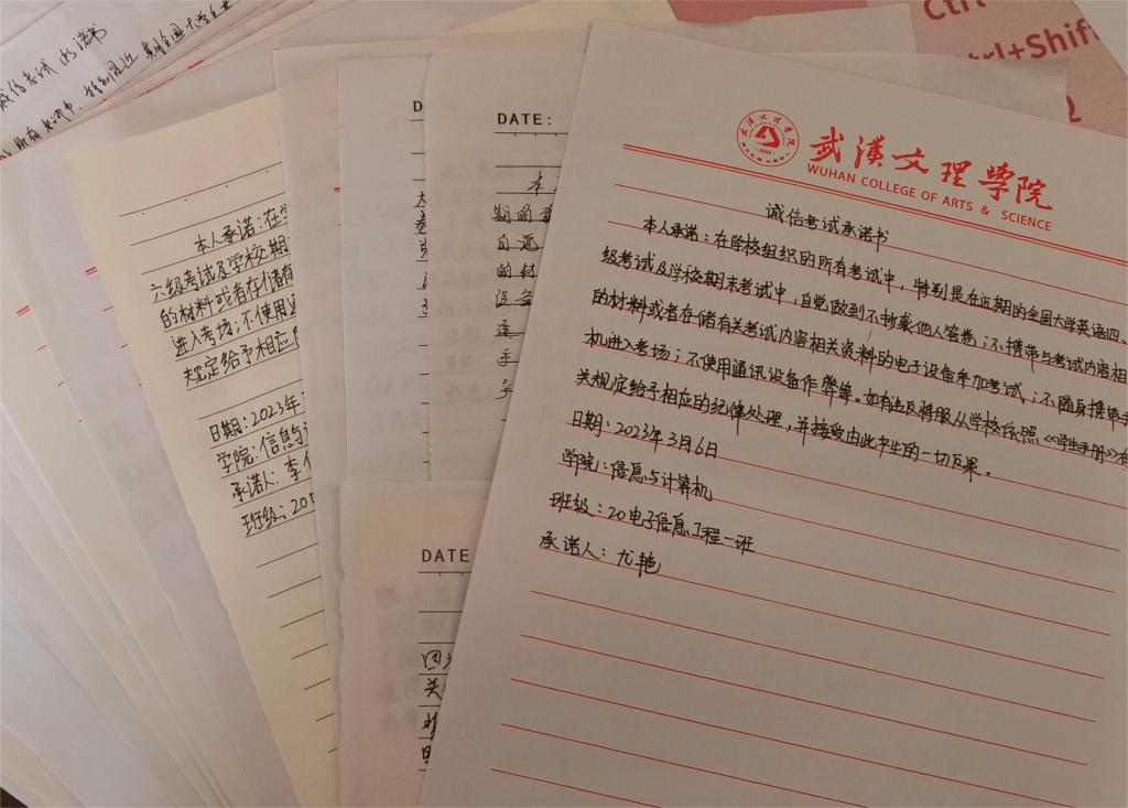 在各项活动中融入诚信教育,比如签订四六级考试诚信书,学科竞赛诚信书等,让学生在各种比赛活动中文明有礼,诚实守信,收到良好的效果。