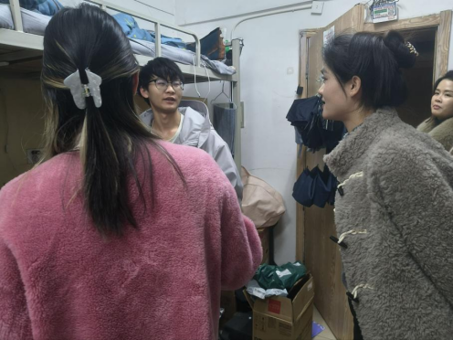 此外,辅导员们还与同学们亲切交流,询问大家的学习近况与生活需求,提醒大家注意冬季保暖与用电安全,合理安排作息时间,以饱满的精神状态投入到学习和生活中。同学们积极配合查寝工作,主动汇报近期情况,并就关心的问题与辅导员沟通交流。